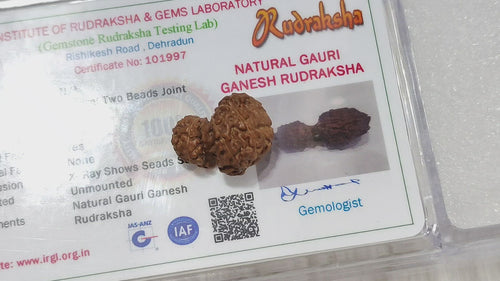 The Garbh Gauri Rudraksha from Brahmatells is a rare and sacred bead originating from the revered regions of Nepal. This unique Rudraksha symbolizes the profound bond between Mother Parvati and Lord Ganesha, making it a powerful emblem of divine maternal love. The naturally joined beads represent the unbreakable connection between mother and child, offering both spiritual and emotional significance to those who wear it.